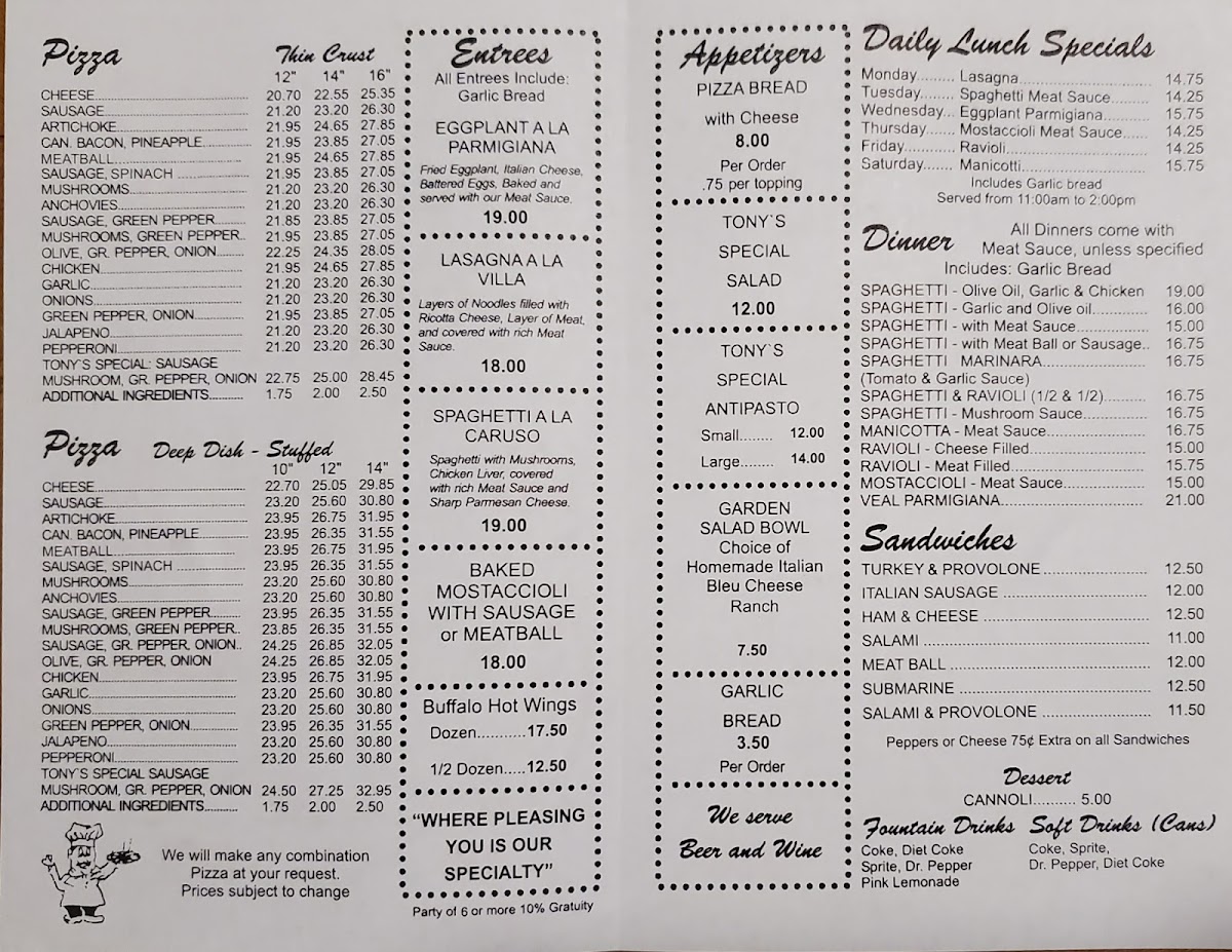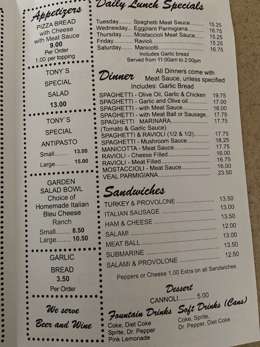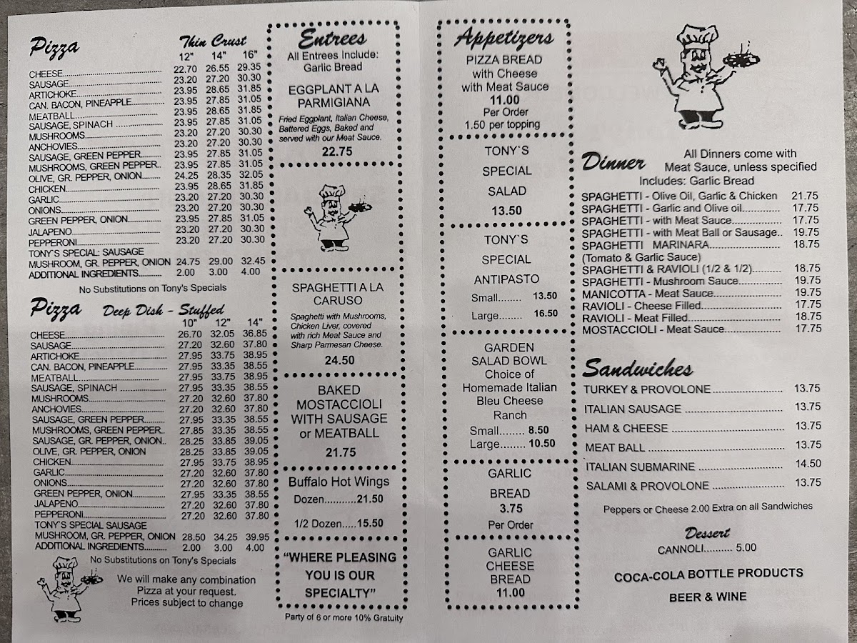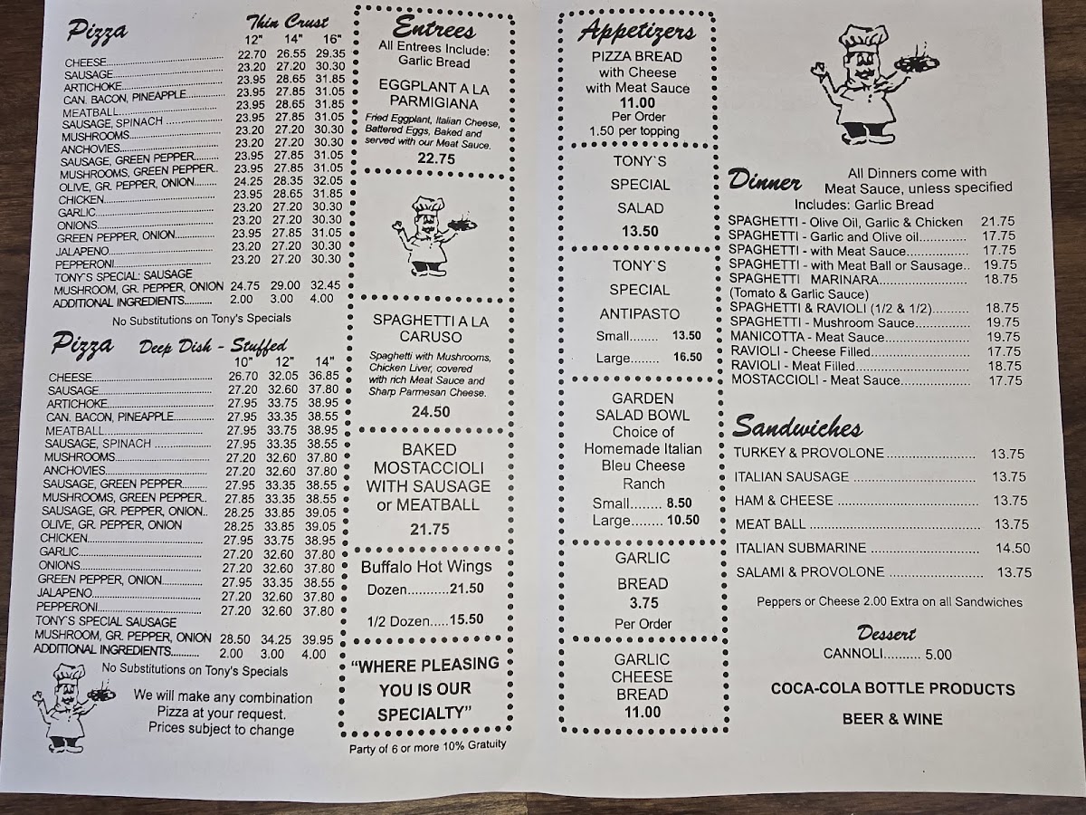 Whether you’re a local or just passing through, Tony's Little Italy is a must-visit destination for pizza enthusiasts. Come for the pizza, stay for the heartfelt hospitality, and leave with a satisfied appetite and a smile. It’s more than just a meal — it’s a community experience that captures the essence of Italian-American dining.